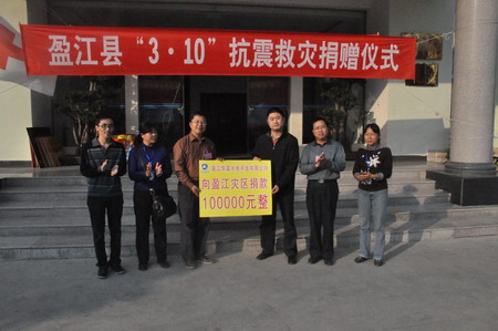 當日下午,公司副總經理楊春風將捐款送到了盈江縣政府,并表示:華富公司希望在救助災區和重建災區過程中與災區同胞同舟共濟,攜手共度,目前余震不斷,華富公司作為植根于盈江本土企業,會全力支援災區人民。德宏州州長助理刀承賢、盈江縣縣委副書記李毅接受了捐款,并表示感謝。