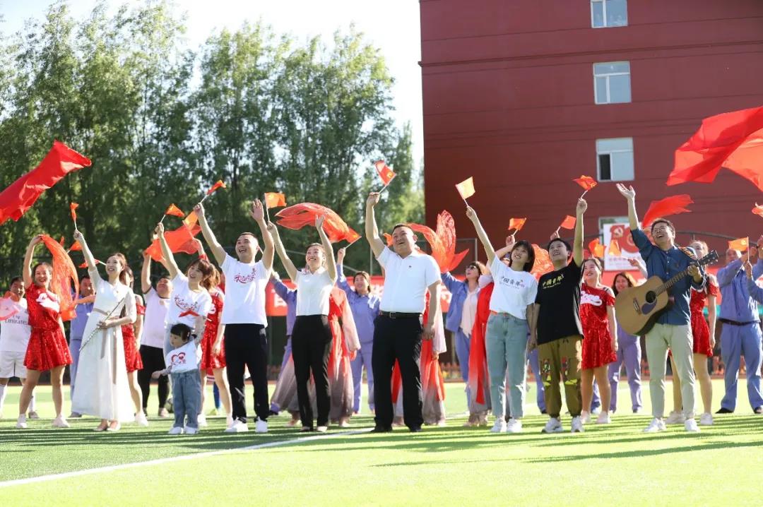 “唱支山歌給黨聽,我把黨來比母親……”上百名職工在足球場唱響《唱支山歌給黨聽》,用充滿激情的歌聲慶祝建黨100周年!歡快的旋律聲中,大家齊聲合唱,踏著節奏歡快地一起舞動,揮動手中的黨旗,露出真誠的笑容,深情地唱出了心底對黨濃濃的熱愛和滿滿的祝福。